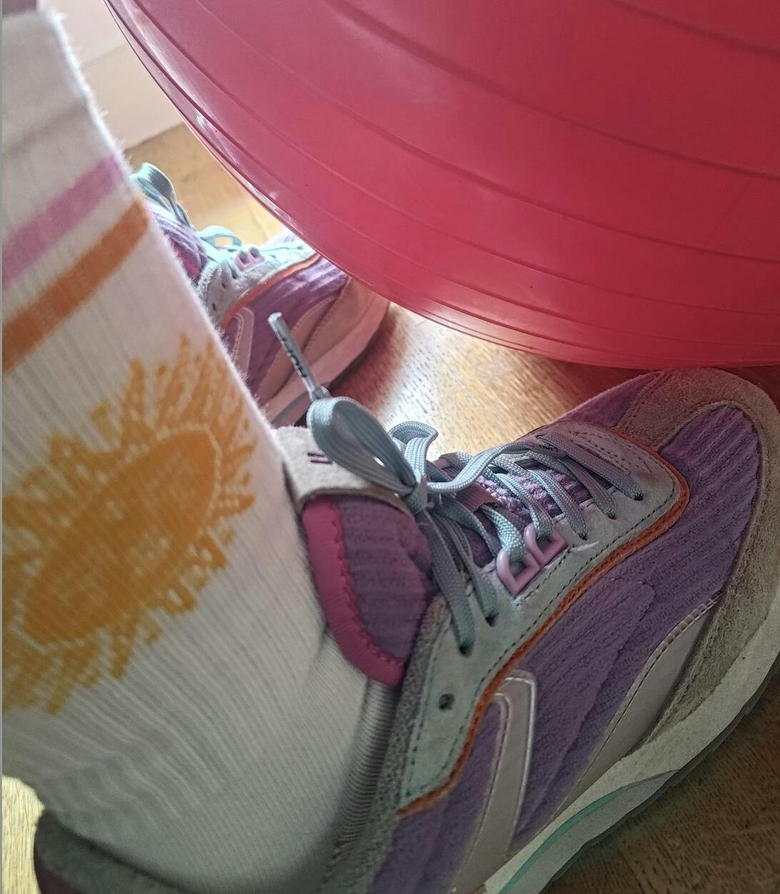 la semelle est dotée de jolis picots pour une adhérence optimale sur toutes les surfaces, parfaites pour le reformer, pilates et le yoga ou même pour flâner à la maison.