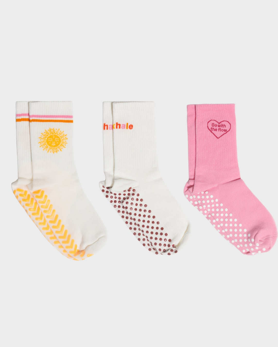 Spécialement conçues pour la pratique du Pilates reformer et du yoga. Les chaussettes antidérapantes Sundara allient confort et sécurité.